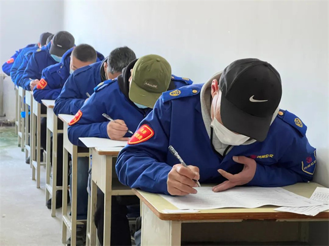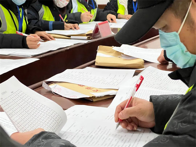 駕駛員筆答考試結束后,工作人員認真開展閱卷工作。