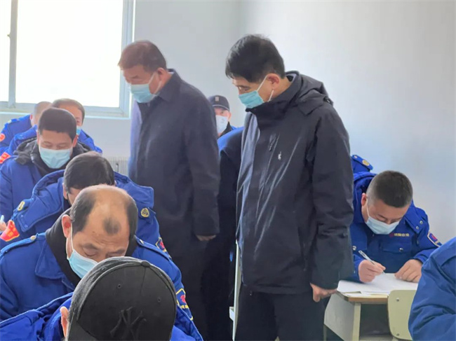 市城建交通農林工會主席劉宗純在客運集團黨委書記董事長孟令軍的陪同下視察考場。