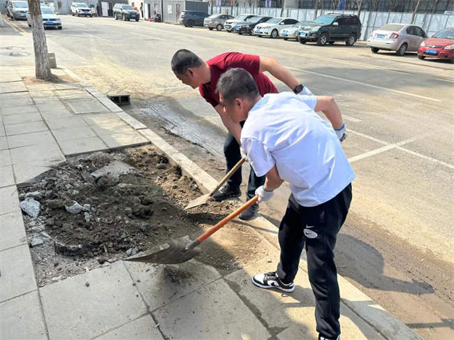 4月12日晚19時(shí),劉嘉巖陪同市政部門工作人員來到實(shí)地現(xiàn)場查看道路狀況,確定了道路修補(bǔ)方案。經(jīng)過兩個(gè)多小時(shí)的施工,路面破損問題得到了有效解決。