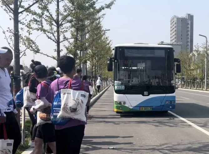 駕駛員們面帶微笑站在車旁,熱情地迎接參加“鐵馬”的跑友和志愿者們登車?!澳茫瑲g迎乘車,加油!”“司機(jī)師傅辛苦啦!”……
