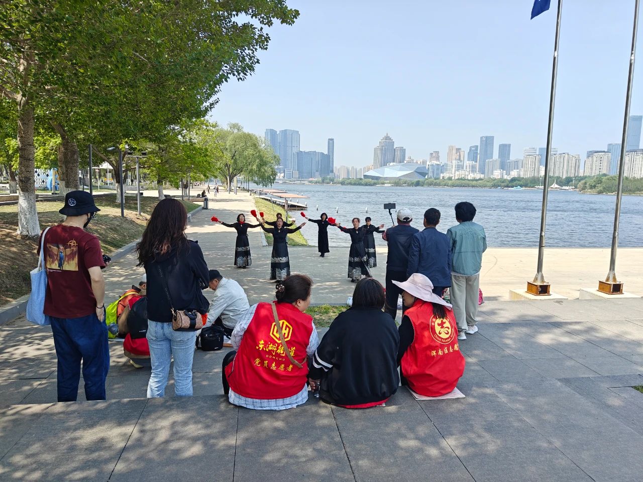 當(dāng)天清晨9點(diǎn),載滿(mǎn)歡聲笑語(yǔ)的公交車(chē)準(zhǔn)時(shí)出發(fā)。在奧林匹克公園河畔,老人們漫步林蔭道,賞花觀景、拍照留念,社區(qū)老年模特隊(duì)身著馬面裙,手拿紅色折扇在湖邊翩翩起舞驚艷全場(chǎng),翩躚身影與粼粼波光相映成趣。返程途中,車(chē)廂化身為"流動(dòng)文化站",黨員志愿者帶領(lǐng)老人們開(kāi)展紅歌聯(lián)唱,《我和我的祖國(guó)》《沒(méi)有共產(chǎn)黨就沒(méi)有新中國(guó)》的旋律此起彼伏,溫情涌動(dòng)間拉近了黨群距離。