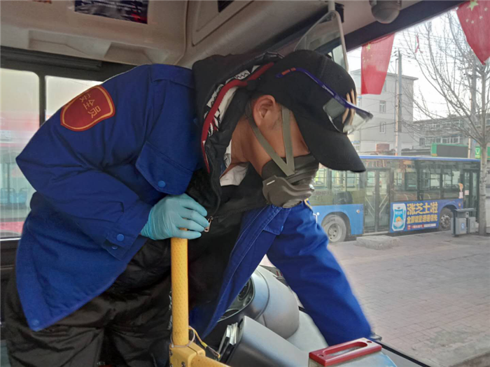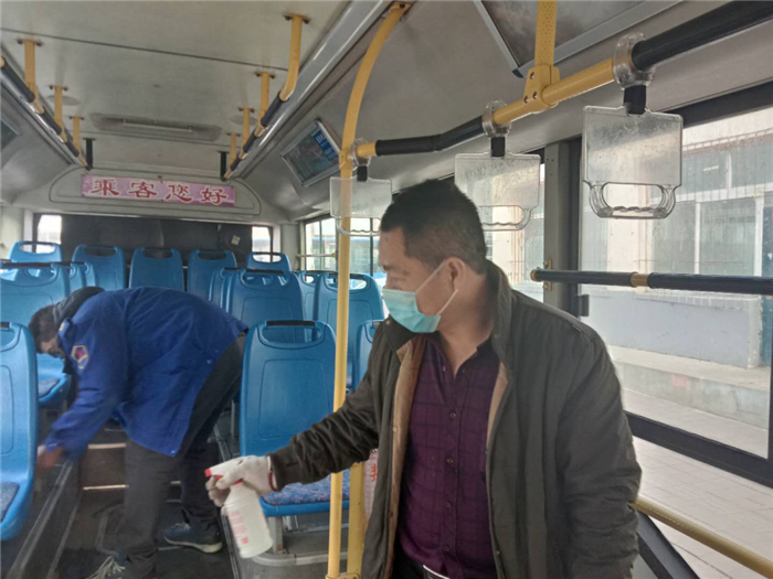 根據(jù)疫情防控情況,399路車隊(duì)長劉濤帶領(lǐng)駕駛員們?yōu)楣痪€路常態(tài)化營運(yùn)默默付出辛勤的勞動。他們堅(jiān)持每天對所有營運(yùn)車輛消毒、通風(fēng),重點(diǎn)對座椅、扶手、拉環(huán)等乘客易接觸的部位進(jìn)行擦拭消毒,時(shí)刻做好自身防護(hù)。車隊(duì)要求所有人員上崗必須佩戴口罩和接受體溫檢測,最大限度遏制病毒傳播的渠道。每天在認(rèn)真做好車輛消毒、通風(fēng)工作的同時(shí),還積極為乘客做好掃碼登記提醒等工作,盡職盡責(zé),護(hù)航每一位乘客。